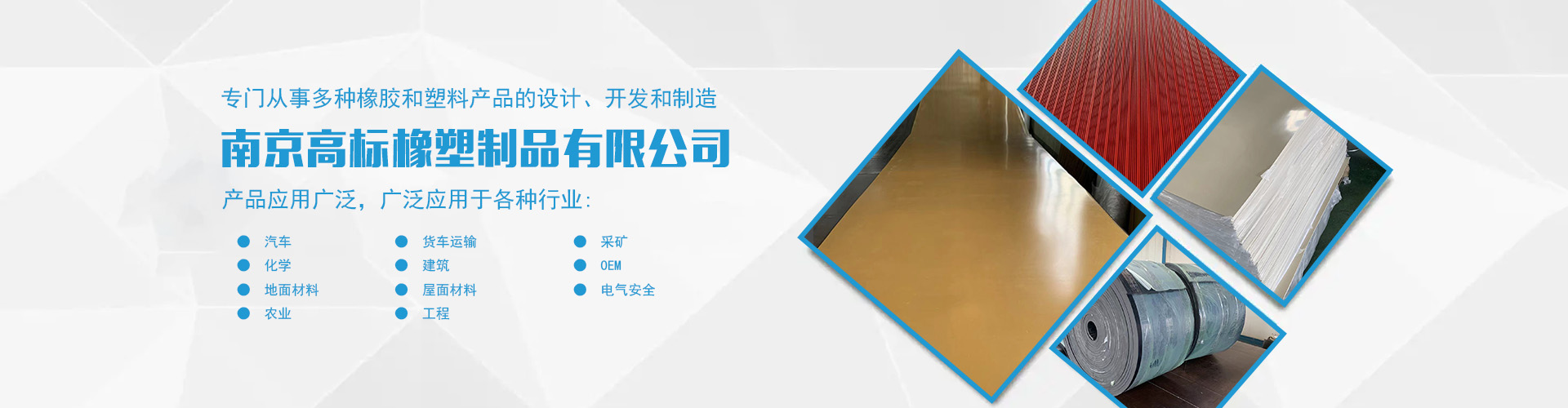 南京高標橡塑制品有限公司是一家專業(yè)的橡膠板、橡膠制品和熱塑性塑料產(chǎn)品的制造商。主營產(chǎn)品:三元乙丙橡膠板,丁腈橡膠版,氯丁橡膠板,丁苯橡膠板,丁基橡膠板,天然橡膠板,硅橡膠板,氟橡膠板,絕緣,防靜電,導(dǎo)電橡膠板,夾布,夾金屬網(wǎng)橡膠板,耐酸堿橡膠板,耐油橡膠板,耐磨橡膠板,阻燃橡膠板,阻尼橡膠板,減震橡膠板,防滑橡膠板,橡膠墊片等。 高標橡塑專門從事多種橡膠和塑料產(chǎn)品的設(shè)計、開發(fā)和制造。我們的產(chǎn)品應(yīng)用廣泛。廣泛應(yīng)用于各種行業(yè),包括:汽車,貨車運輸,采礦,化學,建筑,OEM,地面材料,屋面材料,電氣安全,農(nóng)業(yè),工程等。 高標橡塑的客戶服務(wù)于許多行業(yè),包括墊片切割、分銷商、工業(yè)用品零售商和批發(fā)商。自
